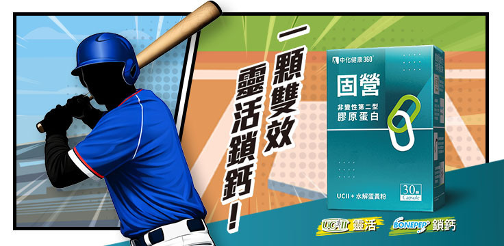 70年老字號生技大廠中化裕民公司出品的「固營」,它有足量40mg的UCII可以提升保健效果,同時加入專利特殊蛋黃胜肽BONEPEP(水解蛋黃粉)一起用,效果加乘、裡外兼”固”。
